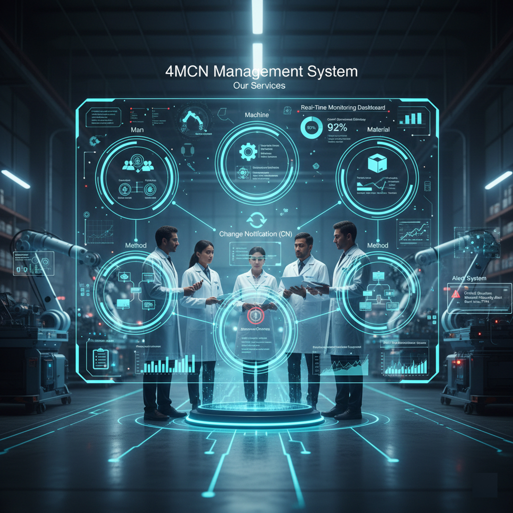 Our 4MCN Management Services provide a powerful process control and quality improvement solution designed to monitor and manage the critical elements of 4M (Man, Machine, Material, Method) + Change Notification (CN) in manufacturing and industrial operations. Through 4MCN Management Services, organizations ensure process stability, reduce defects, and improve overall operational efficiency. Moreover, 4MCN Management Services help streamline production control, strengthen quality standards, and support continuous improvement initiatives across departments.