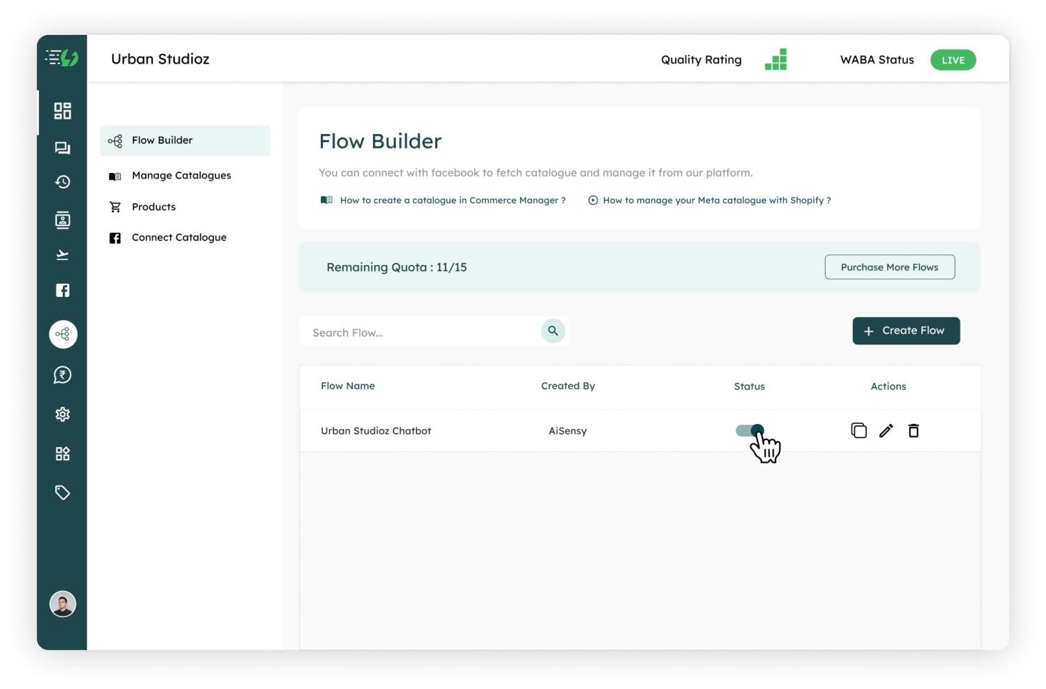 Save and enable your chatbot to start automating conversations and responding to customers instantly on WhatsApp.